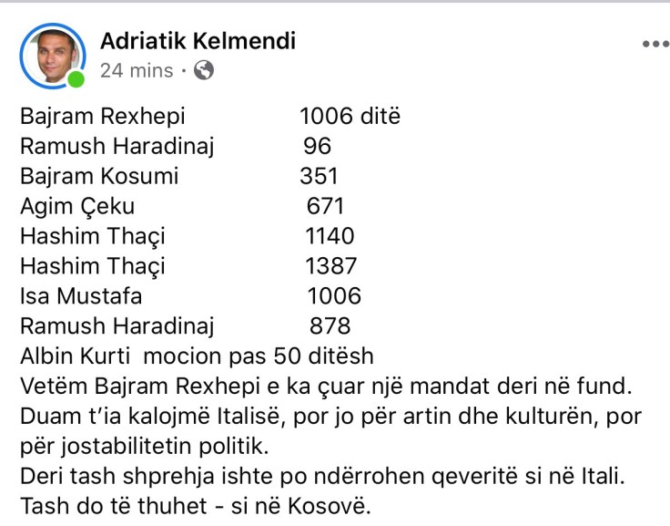 Figure 1.1. Adriatik Kelmendi, Facebook, March 25, 2020.