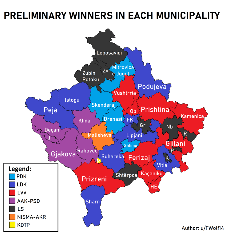 Figure 2.2. The Election Map in 2019 Parliamentary Election in Kosovo.